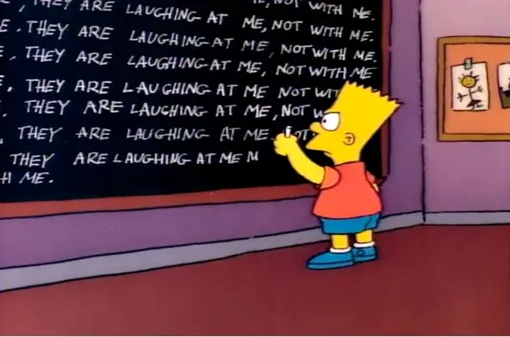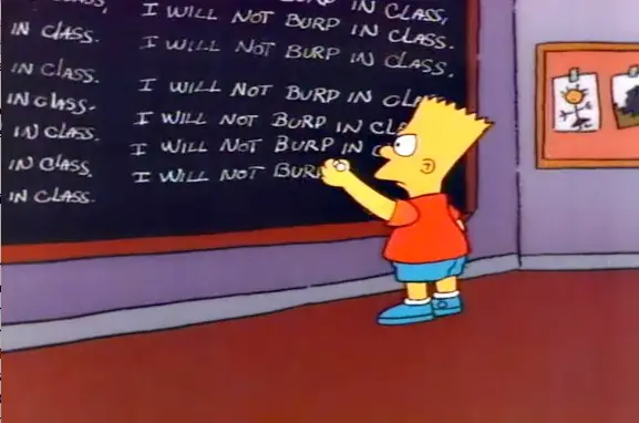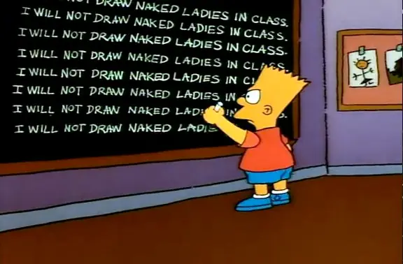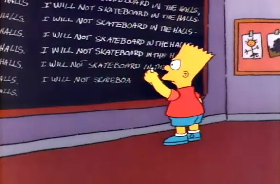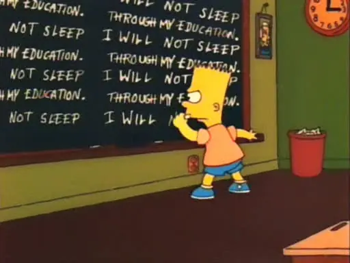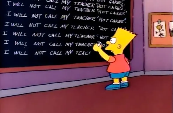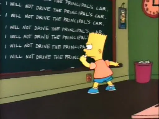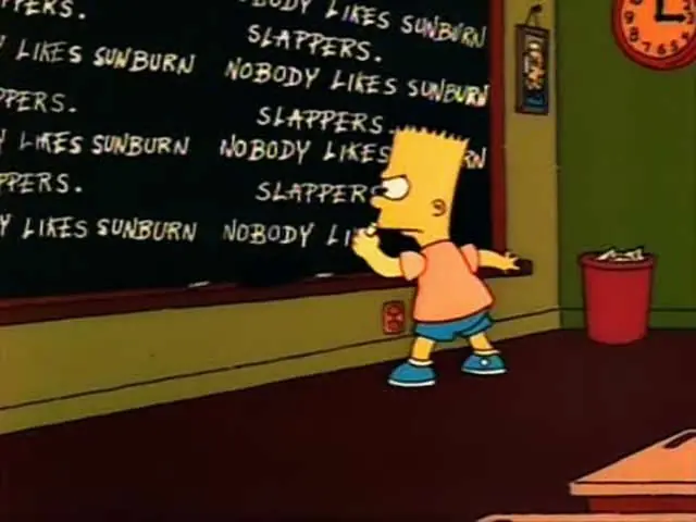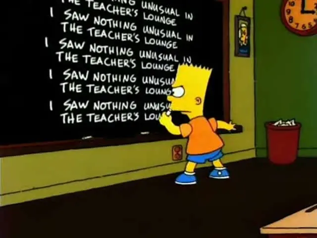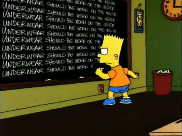 Siempre he querido saber que dice la pizarra donde bart escribe. Pues como yo tenia esa duda sé que muchos tambien asi que les dejo toda esa info. Por supuesto tambien para mejorar el post les agrego toda la info de cada uno de los capitulos de los simpsons.