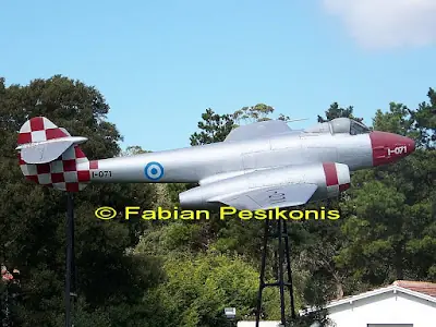 Este Meteor desafectado del servicio a partir del 30/12/70, fué exibido sobre pilones dentro de las