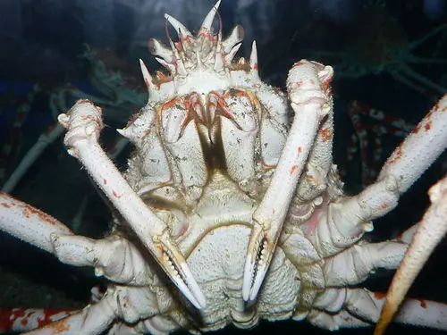 El cangrejo gigante japonés (Macrocheira kaempferi), también conocido como cangrejo de isla japonés, pertenece al grupo de los cangrejos araña, que se caracterizan por su caparazón triangular. Es un animal que vive en las profundidades del Océano Pacífico y se caracteriza por ser ciego, tener un oído superdesarrollado y tener unos pelos sensibles a las ondas de sonido submarinas, lo cual le permite captar ondas de sonido aún cuando sus propios oídos no pueden hacerlo.