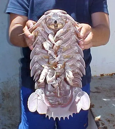 Este crustáceo marino es pariente de la cochinilla de humedad aunque su tamaño multiplica varias veces al pequeño bicho de jardín. De hecho, este enorme crustáceo, conocido científicamente como Bathynomus giganteus, es el miembro más grande de la familia de los isópodos del que tengamos noticia (vale la pena recordar que el fondo de los océanos todavía tiene tanto de profundo como de desconocido).