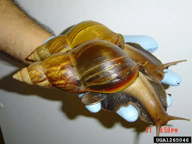 El Achatina fulica o caracol gigante africano es la especie de mayor tamaño de este molusco: alcanza 25 cm de longitud y 200 gr de peso. Nativo del sudeste de África, se ha extendido por el mundo y es una plaga para la agricultura.