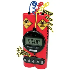 142fc496eac1104b24ae30fdcb1cffa1.11711001451Un despertador muy original con forma de dinamita que te despertará como si hubiera una bomba bajo tu cama. ¡Desactívalo para evitar que cause una gran explosión!