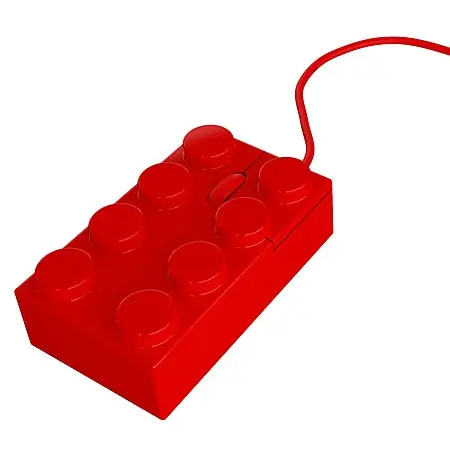 Un ratón óptico con conexión USB y con forma de ladrillo rojo gigante. ¡La excusa perfecta para seguir jugando a las construcciones sin esconderte!