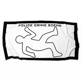 Marca tu territorio en la playa con esta toalla policíaca. Tiene dibujada la silueta de un hombre en la escena del crimen. ¡Nadie querrá tumbarse sobre ella!