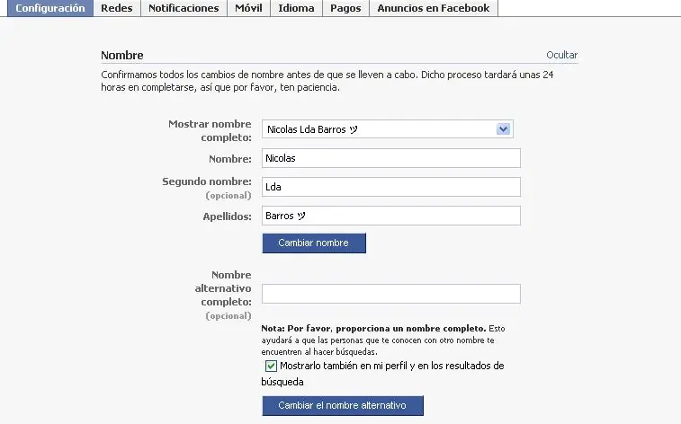 Después que ya estemos en Nuestra configuracion de nuestra cuenta nos vamos a Tu Nombre Real: