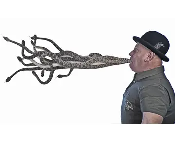 Jackie Bibby el numero número de serpientes mantenidas en la boca es de 11 serpientes de cascabel durante 10 segundos. ¿Qué hará si alguien bate el récord? La respuesta de Jackie es simple: «Los derrotaré para mantener mi récord. ¿Algún interesado?