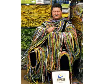 El 11 de marzo de 2009,Gary Duschl , su cadena de envoltorios de chicle medía 17.760 m de largo y estaba formada por 1.370.166 envoltorios, 2.740.332 eslabones y pesaba 365,6 kg, pero es probable que siga creciendo durante muchos años.