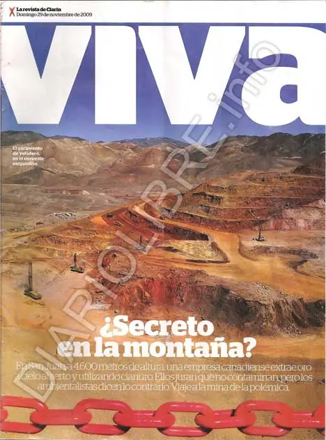 En San Juan a 4.600 metros de altura, una empresa canadiense extrae oro a cielo abierto y utilizando cianuro. Ellos juran que no contaminan pero los ambientalistas dicen lo contrario. Viaje a la mina de la polémica. A San Juan solo llegan 200 diarios Clarin los domingos, dicen que entre La minera y el giojismo los habrian comprado a todos para seguir tapándole los ojos al Pueblo Sanjuanino.
