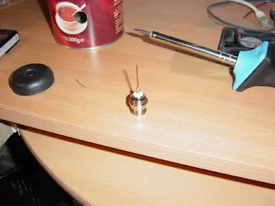 3)Colocar el conector hembra y soldarlo a la lata de metal.