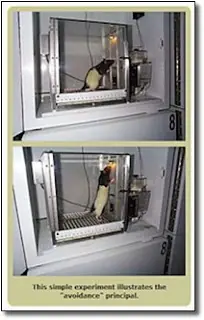 Los conductistas llaman a esto "evasión". Pusieron la caja de modo que le da al animal una descarga eléctrica cada 30 segundos a menos que presione la palanca. Se aprende muy muy rápido el permanecer en la palanca, todo el tiempo, golpeandola una y otra vez. Por siempre.