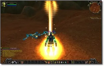 Este es lo mas grande. Al subir de nivel en WoW, una maldita columna de luz dorada se dispara fuera de tu cuerpo.