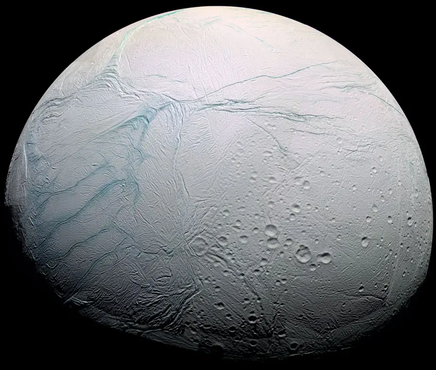 Retratado arriba vemos a Encelado en una imagen de alta resolución de cuando la sonda lo sobrevolaba.