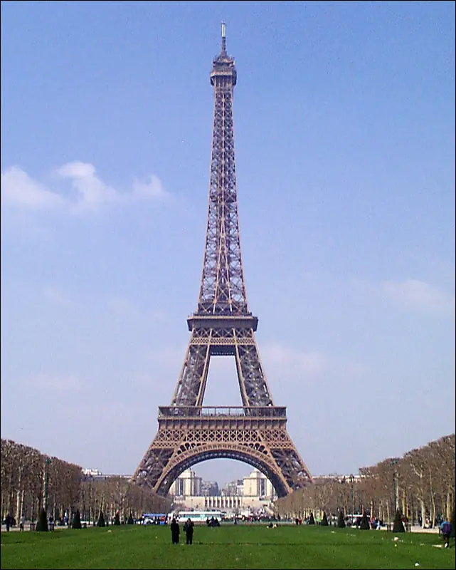 Situada en el extremo del Campo de Marte a la orilla del río Sena, este monumento parisiense, símbolo de Francia y su capital, fue el noveno lugar más visitado del país en 2006 y el primer monumento pago más visitado del mundo con 6.893.000 de visitantes en 2007.Con una altura de 300 metros, prolongada más tarde con una antena a 325 metros, la Torre Eiffel fue el edificio más elevado del mundo durante más de 40 años, hasta que la superó el edificio Chrysler, de Nueva York, en 1930.