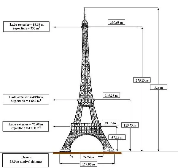 Cuando fue construída era el monumento más alto del mundo, 300 metros, (si sumamos la antena de radio que se encuentra en su cúspide, su altura es de 324 metros). Cuando la construyeron, la torre pesaba alrededor de 7.300 t, si bien hoy en día se calcula su peso en más de 10.000 (debido al museo, restaurantes, almacenes y tiendas que alberga).