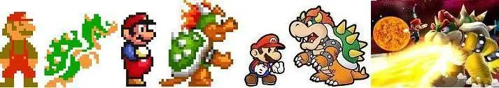 La relación de tamaño existente entre Mario y su gran enemigo, Bowser, ha variado considerablemente desde que ambos se enfrentaron por primera vez. Resulta que en Super Mario Bros. en 1986, cuando éstos se enfrentaron en el puente de lava, Mario en estado normal tenía la mitad del tamaño de Bowser, sin embargo, siendo Super Mario (usando el champiñón), era incluso más alto (un pixel) que su temible archienemigo. Posteriormente, en Super Mario Bros. 3, el rey de los koopas creció un poco, siendo levemente más alto que Mario, tamaño que se mantuvo, aunque con ligeras variaciones como en Super Mario World donde Bowser subido a bordo del Clown Copter, mostraba un tamaño que todavía no había sido mostrado anteriormente.