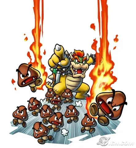Este ejemplo de interacción y/o colaboración es habitual. El principio del juego nos pone a los mandos de Mario, que debe buscar a su hermano por el estómago del reptil. Una vez que lo encontramos, toca seguir avanzando hasta que se advierte un extraño saliente: golpeándolo varias veces, Bowser –que estaba inconsciente- se despierta, pasando así a controlarle a él, dejando a los Mario a la espera en la zona táctil, siendo la pantalla superior donde observamos la aventura desde el punto de vista del villano reconvertido, contra su propia voluntad, en improvisado héroe. Para superar determinados puzzles deberemos alternar entre los diferentes personajes, habiéndose explotado especialmente esta característica para conformar una aventura variadísima.