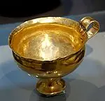Heládico reciente o Micénico antiguo (h. 1600 - h. 1400 a. C.). Período de sucesivas inmigraciones de pueblos ganaderos (aqueos, jonios), que conocían los metales, introdujeron el carro de guerra y el ámbar. Edificaron las fortalezas monumentales de Micenas, Tirinto y Pilos, y formaron urbes a sus alrededores. Comerciaban con Troya, Sicilia y la península itálica. Expandieron sus dominios y fundaron colonias en Mileto, Rodas, Panfilia, Licia y Chipre.