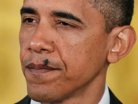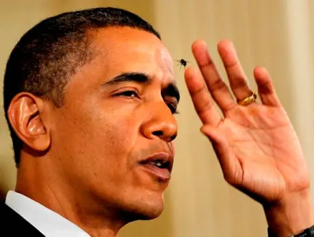 Cuando Obama pronunciaba un discurso sobre la reforma sanitaria el martes en la Casa Blanca, una mosca voló en su alrededor e incluso paró en los labios del conferenciante. El mandatario se vió obligado a espantar el insecto en varias ocasiones para continuar la conferencia.