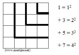 Una particularidad de los cuadrados es que el cuadrado de un número n es igual a la suma de los números impares de 1 a sn-1
