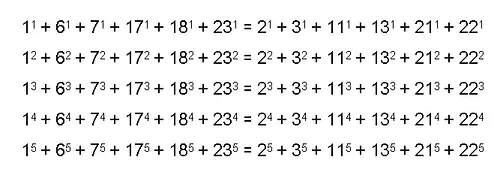 25 + 26 + 27 + 28 + 29 + 30 = 31 + 32 + 33 + 34 + 35