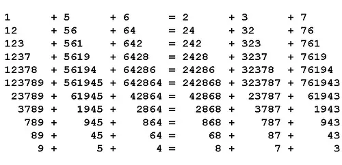 El cuadrado más pequeño posible formado con las 9 primeras cifras es 139.854.276 = 11.8262 y el cuadrado más grande posible es 923.187.456 = 30.3842