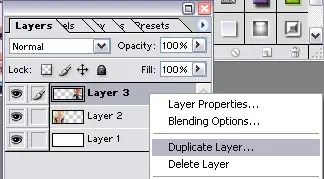 Escojan una layer donde esta una imagen y la duplican. Para hacer esto le hacemos right click y escojemos DUPLICATE LAYER: