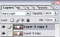 Ahora para el paso final le vamos a dar como mas luz al banner. Para esto vamos a duplicar la layer en la layer palette (en la misma manera que le hicimos antes) y le vamos a cambiar el stilo de NORMAL a HARD LIGHT:
