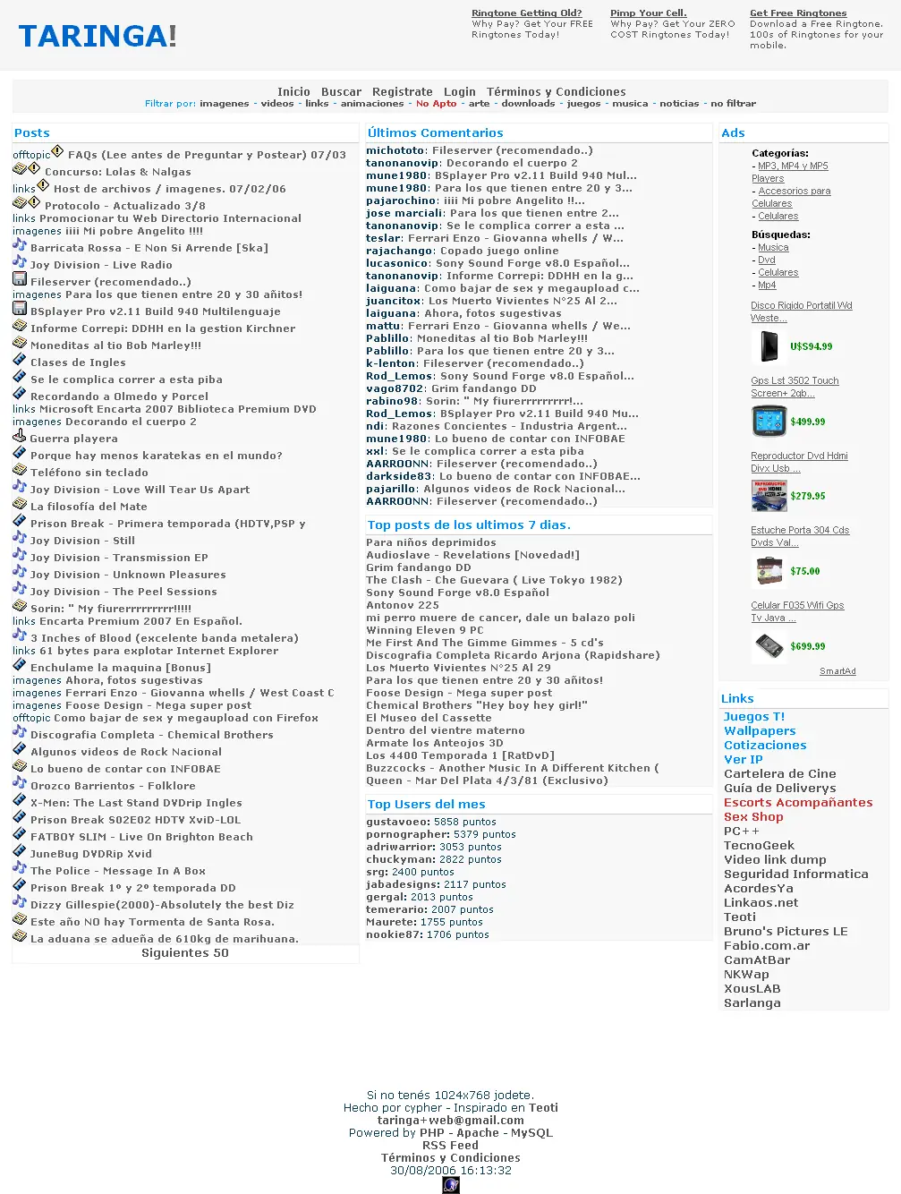 En realidad Cypher es el creador de Taringa alla por 2004 . Cypher se inspiro Teoti.com , web de la cual les dejo unas capturas (las subí a mi hosting) cuya fechas datan del año 2005 y 2006.