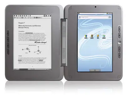 Se llama enTourage eDGe , y es el primer libro electrónico y netbook en un solo dispositivo. Tiene dos pantallas de 9,7 pulgadas, Google Android como sistema operativo y tiene conexiones WiFi, 3G y HDSPA. Cuesta 335 €.