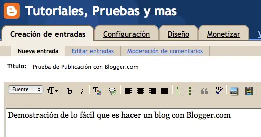 Como pueden apreciar Blogger tiene un editor parecido a Word para agregar imágenes, resaltar texto, agregar enlaces y dejar nuestro primero articulo completamente elegante