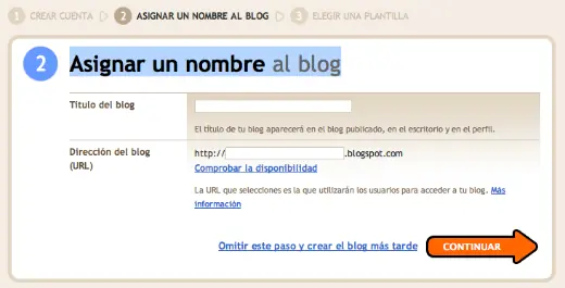 El Segundo paso es darle nombre y descripción a nuestro blog por lo tanto tenemos que elegir uno o simplemente utilizar nuestro nombre o una conjugación de el. Recuerda un nombre amigable o fácil de recordar nos facilitara ser mas visitados por nuestros amigos o familiares.