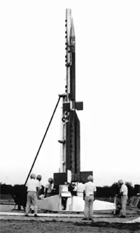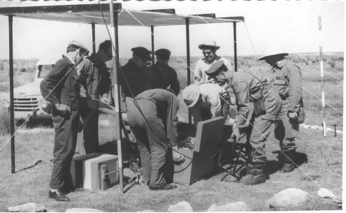 Primera imagen: Cientificos Argentinos se disponen a lanzar el primer Cohete Alfa Centauro en Pampa de Achala, provincia de Cordoba