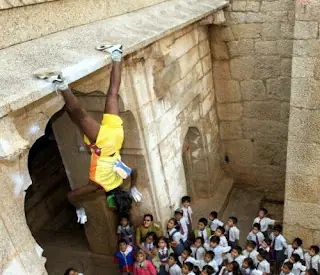 La India tiene ahora un nuevo superhéroe: el Spider-Man indio. En las siguientes fotos lo verán haciendo acrobacias muy peligrosas, subiendo una pared de piedra.