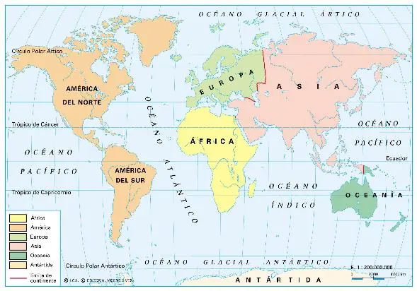 Oceanía: No es un conjunto continuo de tierras emergidas como el resto de los continentes, está formado por un número muy elevado de islas de tamaños y formas muy distintas, situadas al Sureste de Asia y en el océano Pacífico.