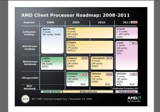 Para las portátiles de alto rendimiento, la compañía tendrá procesadores de doble núcleo con y tecnología de 45 nm con el nombre de Caspian con 2MB de caché para el próximo año. Todo esto lo han dicho en una reunión con analistas financieros, por lo que ya tienen en que trabajar por lo menos dentro de dos o tres años.