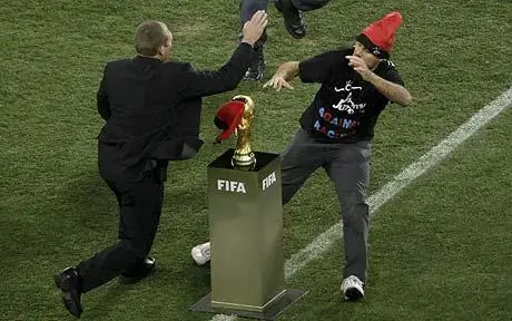 Antes de la salida de los jugadores de las selecciones de Países Bajos y España para disputar la final de la Copa Mundial de Fútbol de 2010, el domingo 11 de julio, en el estadio Soccer City de Johannesburgo, Sudáfrica, corrió hasta llegar muy cerca del trofeo, pero resbaló y fue rápidamente interceptado y detenido por la seguridad. La realización televisiva no mostró lo sucedido. Jimmy deberá comparecer el lunes 12 de julio ante el tribunal de la Copa del Mundo, y será acusado de "invasión e intento de robo de la Copa"