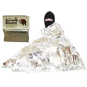 Se trata de una lámina de aluminio muy ligera, para emergencias. El aluminio evita la pérdida de calor.