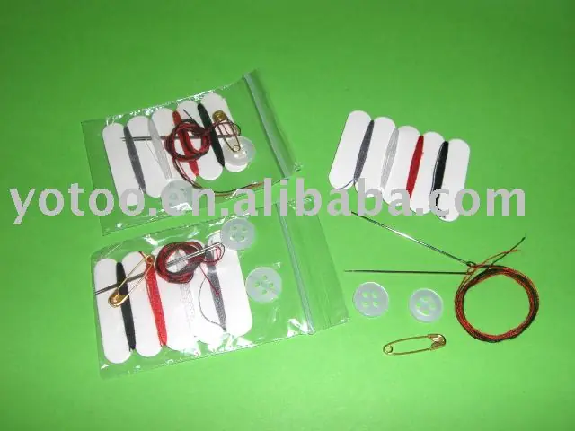 _Aguja, hilo, botones y alfileres de gancho: