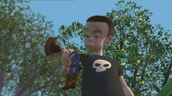 Recuerdan a Sid el niño que torturaba a los juguetes? en “Toy Story” pues si tambien estubo de regreso en Toy Story 3…. pero como el recogedor de basura muy loco escuchando música y bailando, es tambien quien los ayuda a regresar a su casa.