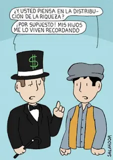 B.El mal reparto de la riqueza.El le reparte las riquezas se queda con la mejor parte.