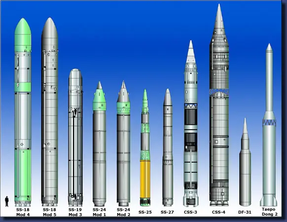 ICBM: proyectil balístico intercontinental, vehículo emplazado en tierra y propulsado por cohetes, capaza de transportar una o más ojivas a distancias intercontinentales (superiores a 3000 millas marinas)(ejemplo de ICBM: SS 18 y Minuteman).
