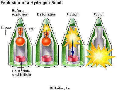 Pasemos a la destrucción de una bomba de un megatón*** , la explosión de una bomba de este tipo detonada sobre el centro de una ciudad destruiría todo, incluyendo edificios de hormigón armado, en un área de casi cinco kilómetros a la redonda, en otras palabras, si se tirara la bomba en Montevideo, digamos que en Plaza Libertad, no quedaría nada hasta 8 de Octubre y Serrato, o hasta Kibón por la rambla, hacia al oeste hasta la refinería de la Teja y al norte hasta el Cerrito de la Victoria; en esta área tanto por la temperatura (millones de grados), como por la intensa radiación o los vientos originados por la explosión que alcanzan los 480 kilómetros, dejarían a ninguna o casi ninguna persona con vida . La temperatura originada sería tan alta -inimaginable para mí- que la radiación térmica prendería fuego espontáneamente a los marcos de madera de las casas, ropas, muebles, combustibles y todo lo que se puedan imaginar en un radio de 8 kilómetros. A una distancia de 14 kilómetros se registrarían severos daños a los edificios de estructura corriente y quemaduras de segundo grado en las personas expuestas, para ese momento el viento inicial convertiría en metralla los escombros de la ciudad extendiendo muy rápidamente a su vez el fuego, el incendio en la ciudad atacada sería peor que los de Hamburgo y Tokyo durante la segunda guerra mundial.