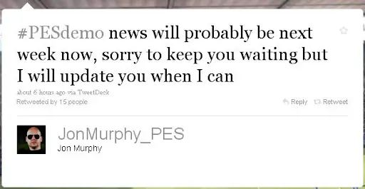 En uno de estos dias sale PES 2011 DEMO... Segun lo anuncio Jon Murphy en su Twitter, lo que no se sabe es que Equipos o Estadios vendran...