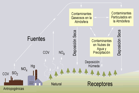 Es un fenómeno atmosférico que se produce cuando se incorporan compuestos ácidos a las gotitas de agua que forman las nubes. El ciclo comienza cuando las industrias, o los motores de los autos emiten óxido de azufre en estado gaseoso que se es trasnportado por los vientos a cientos de kilómetros. En la tropósfera (una de las capas de la atmósfera), la luz solar, combinada con el agua y el oxígeno, activa una reacción en los gases originando nuevos ácidos que regresan a la tierra con las lluvias.
