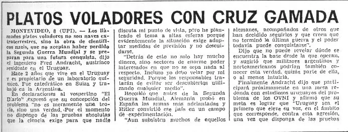 Reproducimos a continuación una noticia que apareció en el periódico argentino "La Razón" de Buenos Aires hacia 1977/78.