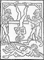 La sierra: A la victima se la colgaba boca abajo de los tobillos, con lo que toda o casi toda la sangre bajaba hacia la cabeza, oxigenando el cerebro y manteniéndola consciente un tiempo mayor que en otros casos.