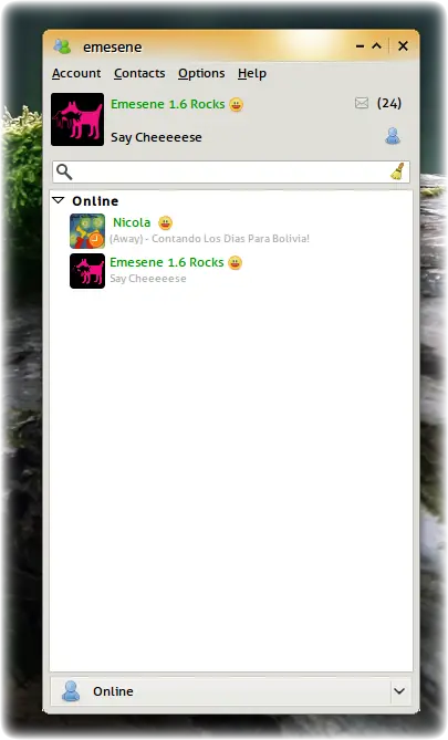 emesene ofrece características similares a las de Windows Live Messenger, pero manteniendo un aspecto más sencillo y agradable.
