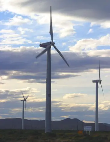 es un generador de corriente eléctrica a partir de la energía cinética del viento. Esta imagen, por ejemplo, corresponde a un campo de aerogeneradores en Pozo Izquierdo, Gran Canaria.