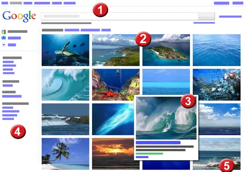 A continuación, te ofrecemos una breve guía de los elementos que puedes encontrar en la página de resultados de búsqueda de Google Imágenes.