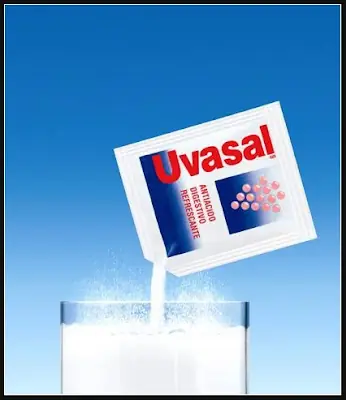 Uvasal: cada 100 g contiene: Acido Tartárico 45.95 g, Acido Cítrico Anhidro 1.45 g, Bicarbonato de Sodio 50.31 g, Cafeína Anhidra 0.49 g, Sulfato de Magnesio Dihidratado 1.80 g. Uvasal sabor limón: cada 100 g contiene: Acido Tartárico 45.53 g, Acido... Y MUCHOS COLORES , esta receta paso a formarrrrrrr..... EL GRAN SALVADOR!!
